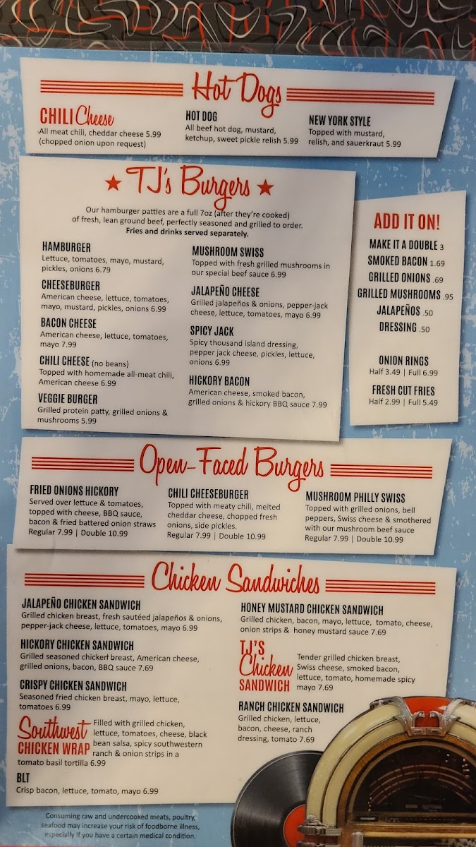 TJ's Burger House Menu